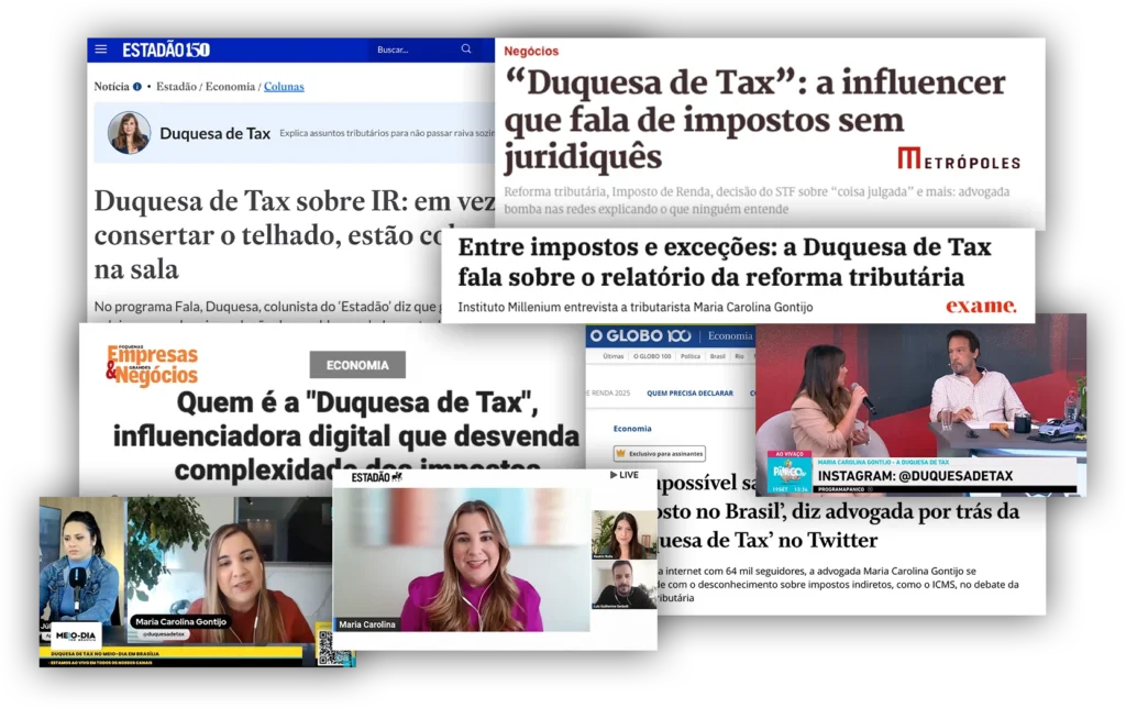 Especialista em Direito Tributário com 18 anos de atuação em grandes empresas como EY e Stellantis. Professora, colunista do Estadão e criadora da “Duquesa De Tax”, a maior voz do tributário nas redes sociais. Fundadora da Escola de Tax e referência em traduzir o juridiquês com ironia e clareza.